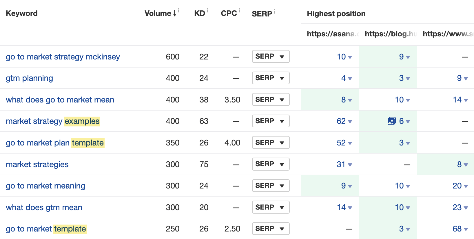 - 귀하가 원하지 않는 키워드의 상위 순위 페이지 순위를 찾으십시오. 이는 종종 하위 주제에 매핑됩니다.