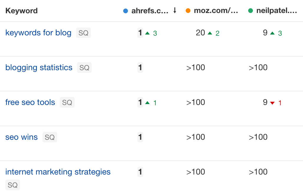 일부 도구는 "진정한" 10개의 파란색 링크 위치가 아니기 때문에 이를 무시하도록 선택할 수 있습니다. Ahrefs에서는 이를 포지션 자체로 간주합니다. 따라서 Ahrefs에서는 3위를 차지했지만 다른 도구에서는 2위를 차지할 가능성이 있습니다.