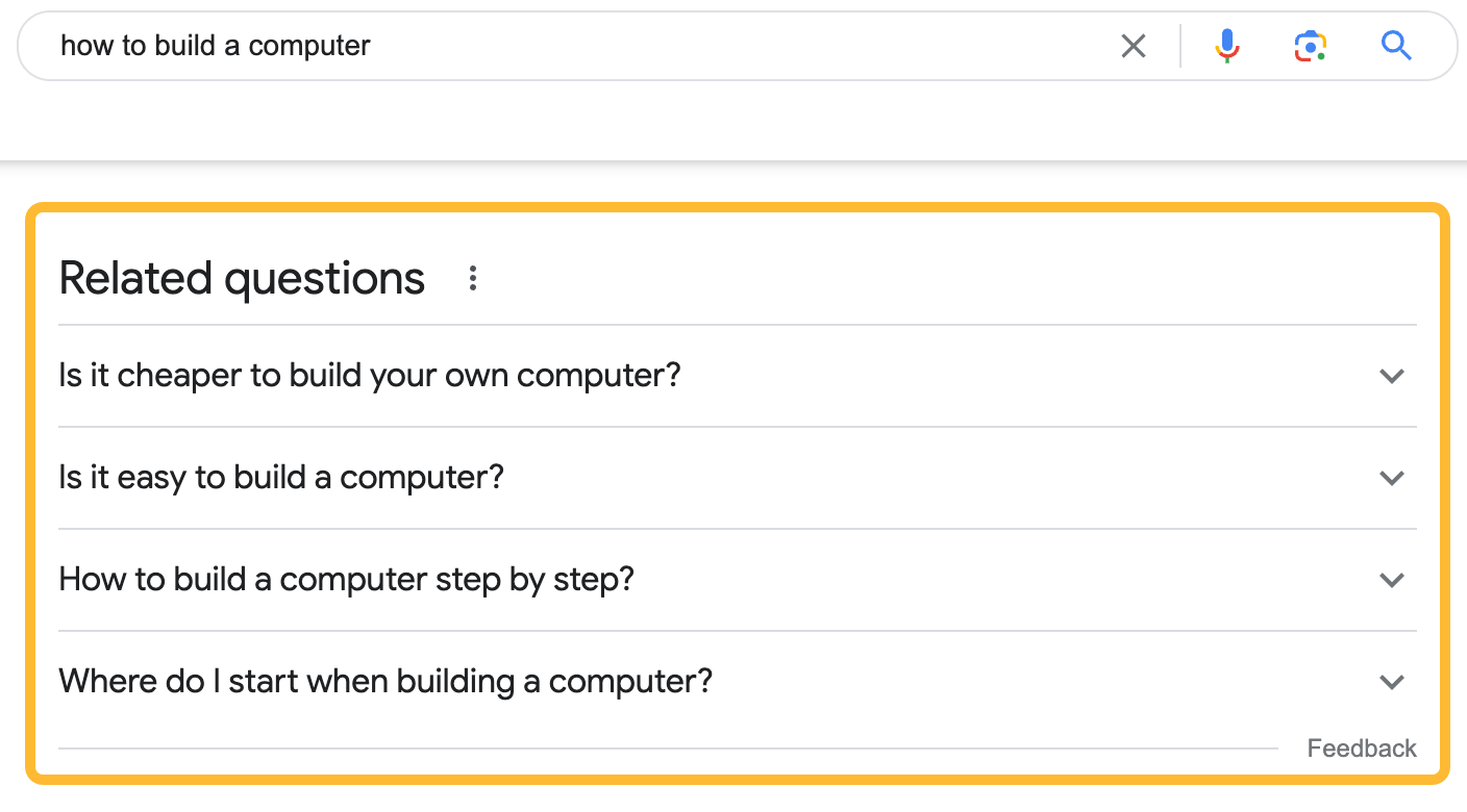 다른 SEO 도구는 이를 다르게 표시할 수 있습니다. 예를 들어, Google은 많은 검색어에 대해 "관련 질문" SERP 기능을 보여줍니다.