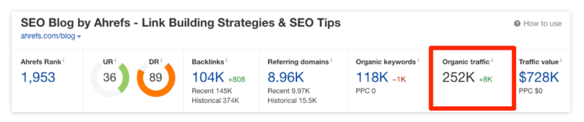일반적으로 권위가 높은 페이지의 백링크는 권위가 낮은 페이지의 백링크보다 강력합니다. 안타깝게도 Google은 2016년에 공개 PageRank 점수를 중단했습니다. 즉, Google이 웹페이지에 얼마나 많은 '권한'을 갖고 있는지 확인할 수 있는 방법이 더 이상 존재하지 않는다는 의미입니다. 운 좋게도 비슷한 측정항목이 있는데 그 중 하나가 Ahrefs URL Rating(UR)입니다.