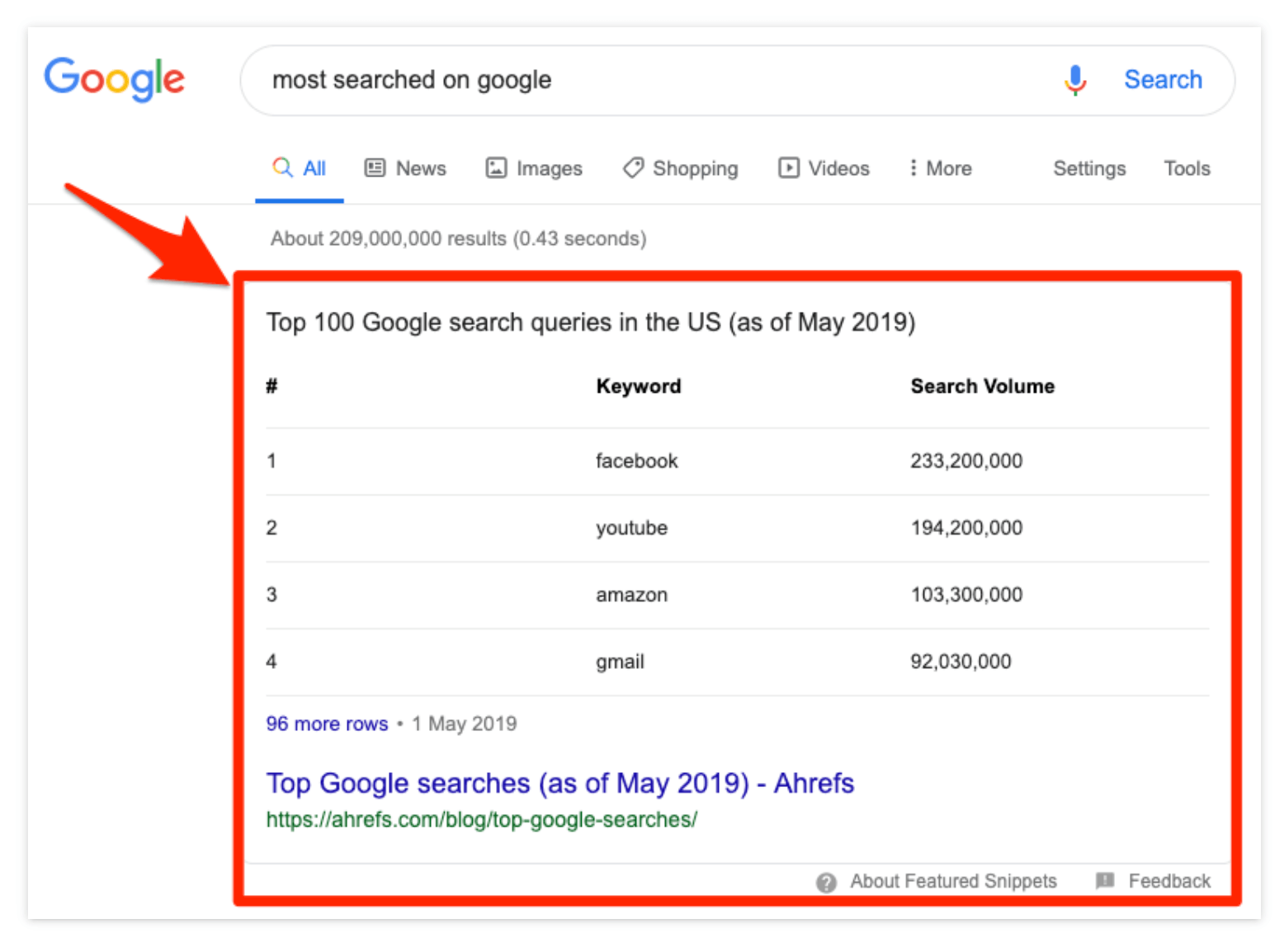 이 외에도 의도를 추론하기 위해 SERP 기능의 존재 여부를 확인할 수도 있습니다. 예를 들어, 결과에 추천 스니펫이 있는 경우 이는 검색자가 정보를 찾고 있음을 나타낼 수 있습니다.