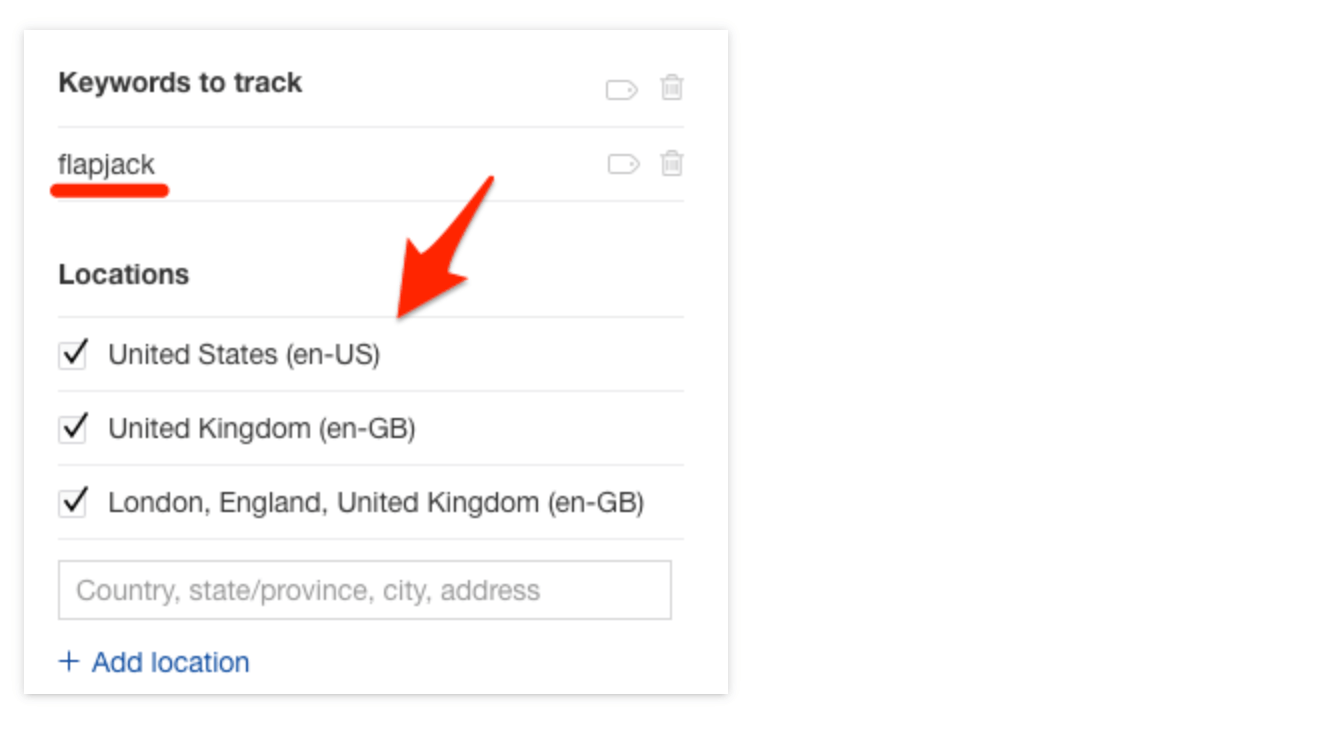 "진짜" 순위를 확인하려면 시크릿 탭을 사용하여 검색 기록에서 모든 개인 설정을 상쇄하세요. 위치 요인을 상쇄하려면 VPN을 사용하세요. 또는 Ahrefs Rank Tracker와 같은 순위 추적 도구를 사용하여 특정 위치에 대한 키워드를 우편번호까지 추적할 수 있습니다. 이는 로컬 SEO에 특히 유용합니다.