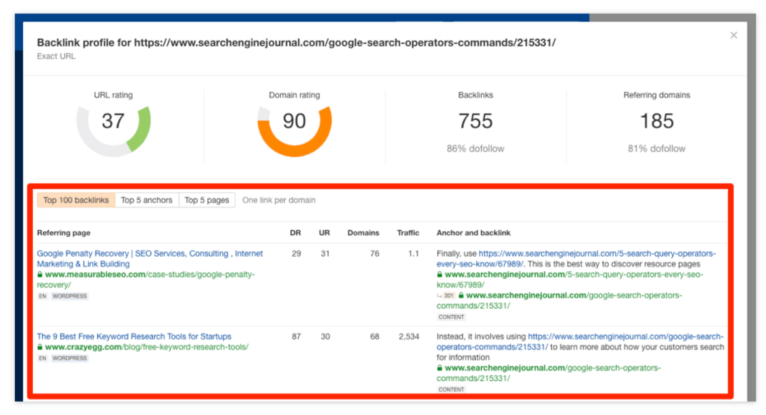 이를 수행하는 한 가지 방법은 다음과 같습니다. Google에서 타겟 키워드를 검색하세요. 귀하의 페이지만큼 좋지 않은 페이지를 찾으십시오. 해당 페이지의 URL을 무료 백링크 검사기에 붙여넣어 상위 100개 링크를 확인하세요.