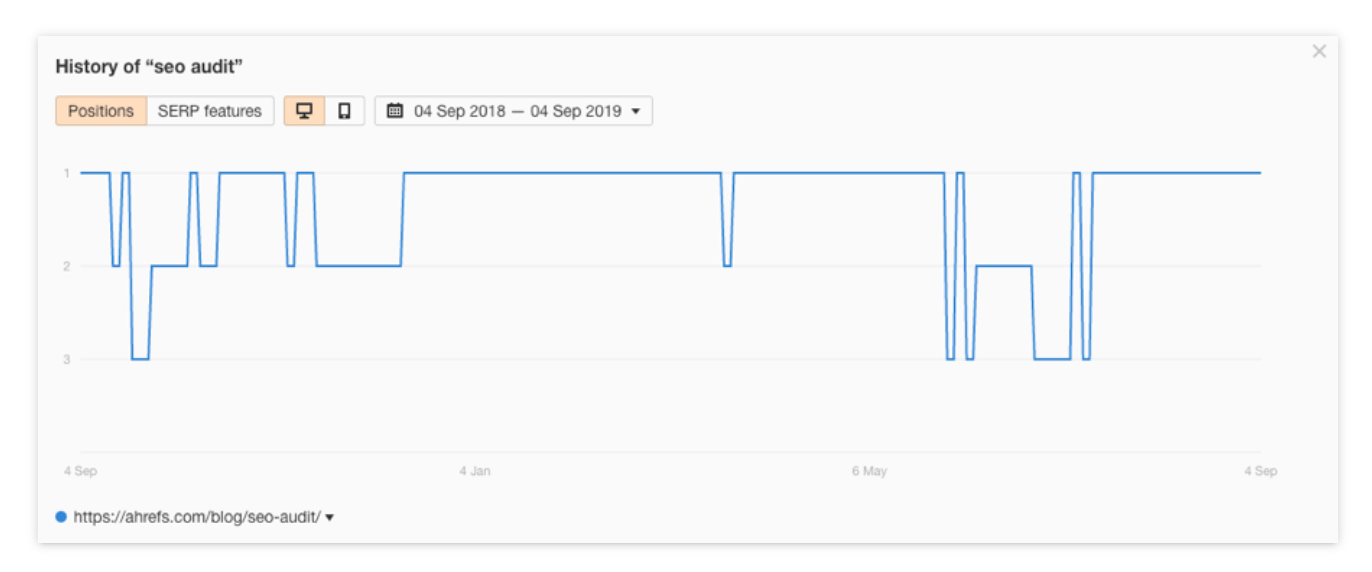 즉, 순위는 여전히 변동합니다. 지난 1년 동안 "SEO 감사"에 대한 순위는 다음과 같습니다.