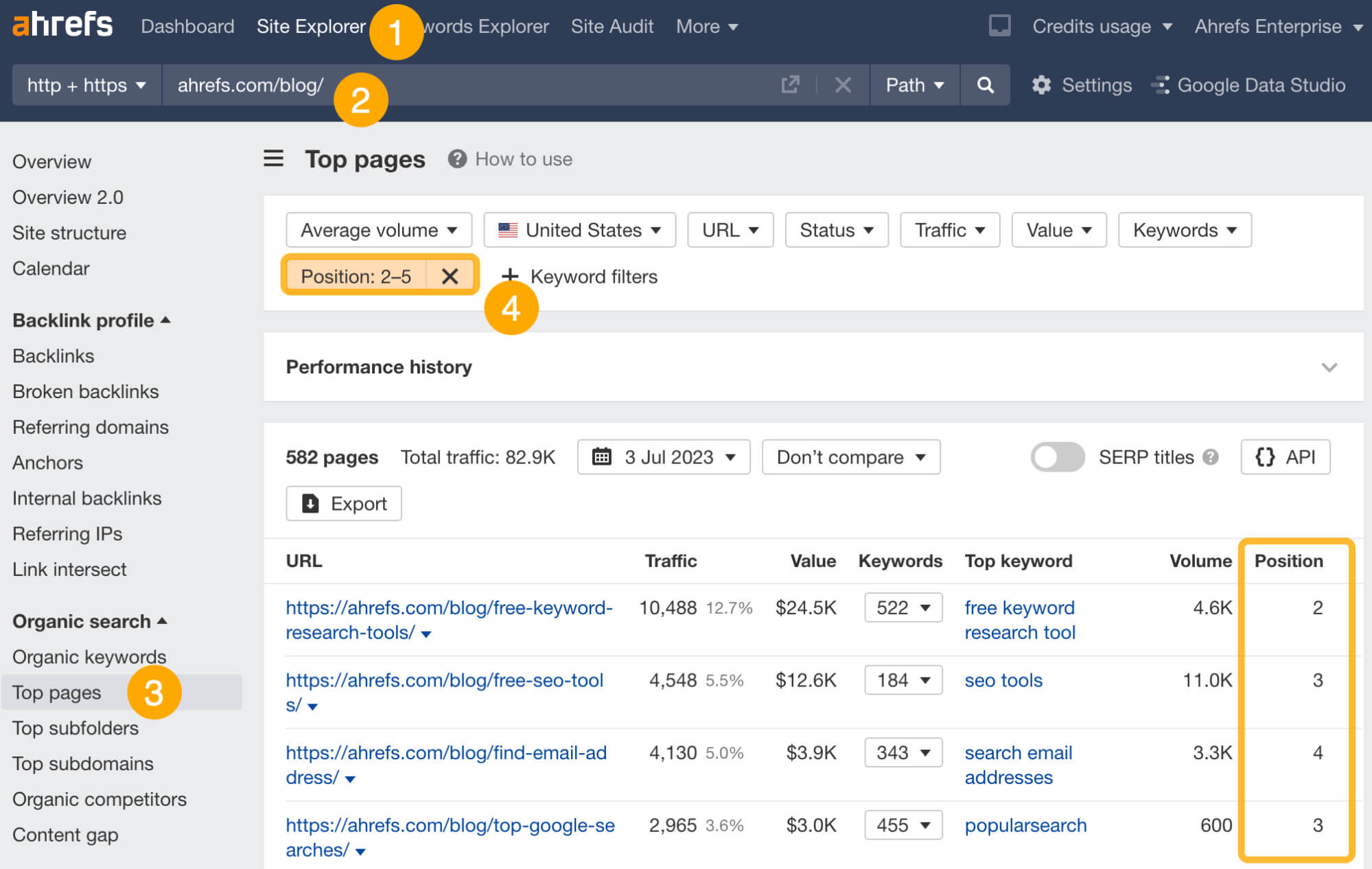 - Ahrefs의 사이트 탐색기로 이동합니다.