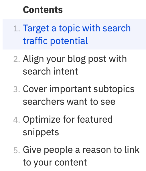 따라서 그들에게 영향을 미치는 좋은 방법은 페이지의 목차를 만드는 것입니다. 이것이 우리가 모든 블로그 게시물에 대해 수행하는 작업입니다.