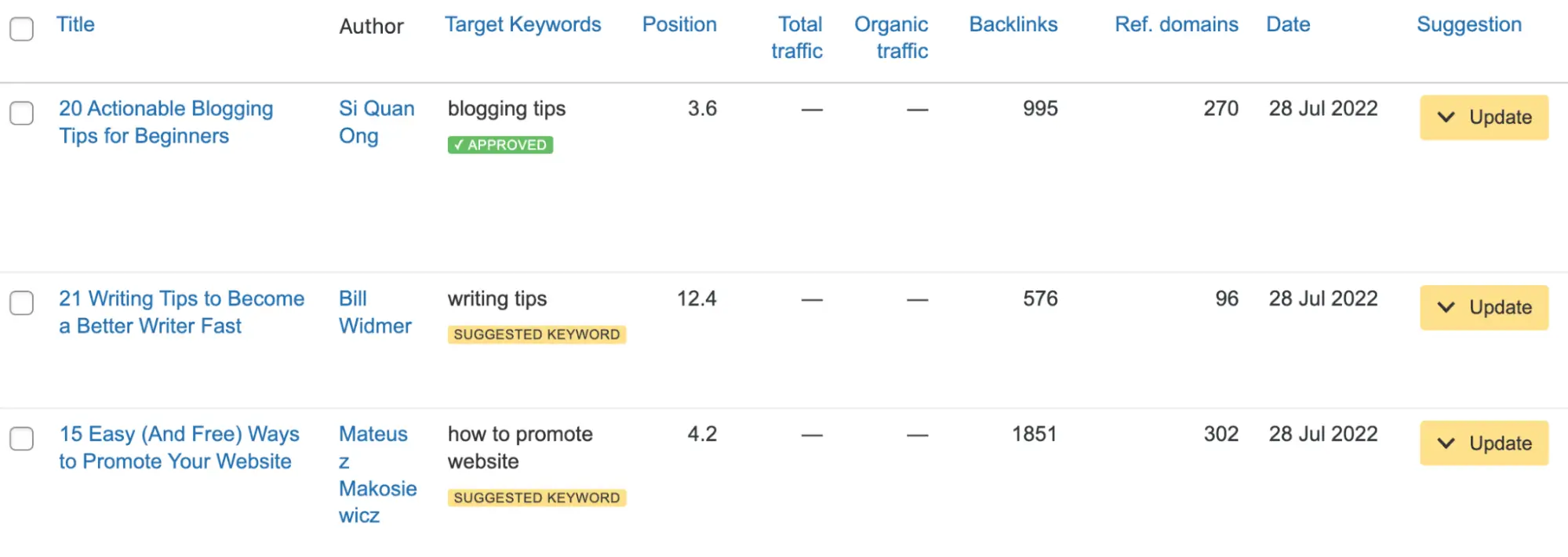 업데이트할 가치가 있는 콘텐츠를 찾는 가장 쉬운 방법은 무료 WordPress SEO 플러그인을 설치하고 콘텐츠 감사를 실행하는 것입니다. 더 많은 트래픽을 얻기 위해 업데이트해야 할 기사를 알려줍니다.