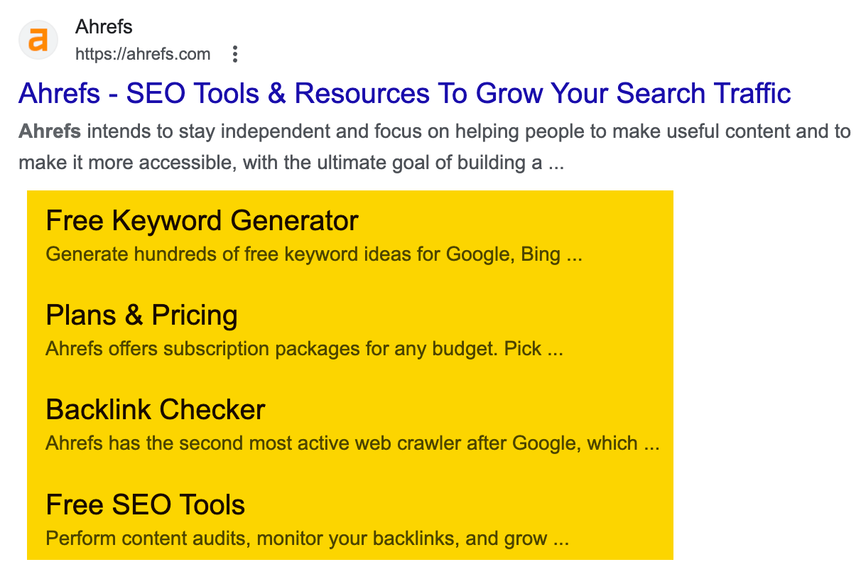 사이트링크는 일부 Google 검색결과 아래에 표시되는 다른 페이지(또는 페이지의 섹션)에 대한 링크입니다. SERP에 대한 더 많은 가시성을 제공합니다.